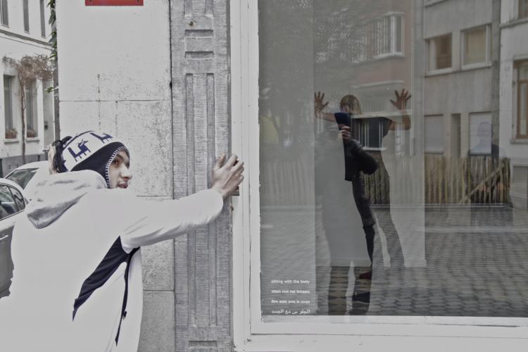 In 10 one-on-one working sessions movements which can be combined with the initial image of the two sitting bodies are searched. (This image was tested during two preparatory working periods in 2012. [read more here >>>])